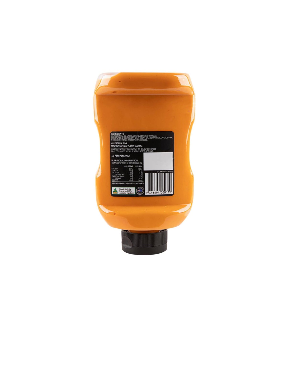 Expertly crafted for taste and quality, 8 Food Peri Peri Aioli (1 L) is a delicious addition to any meal. Made from a blend of spices and peri peri peppers, this aioli adds a spicy kick and rich flavor to sandwiches, dips, and more. Elevate your dishes with 8 Food Peri Peri Aioli.